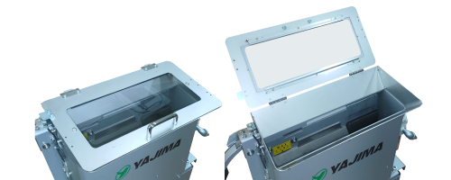 The scooping cylinder and conveyor operations are enabled only when the top cover is closed.