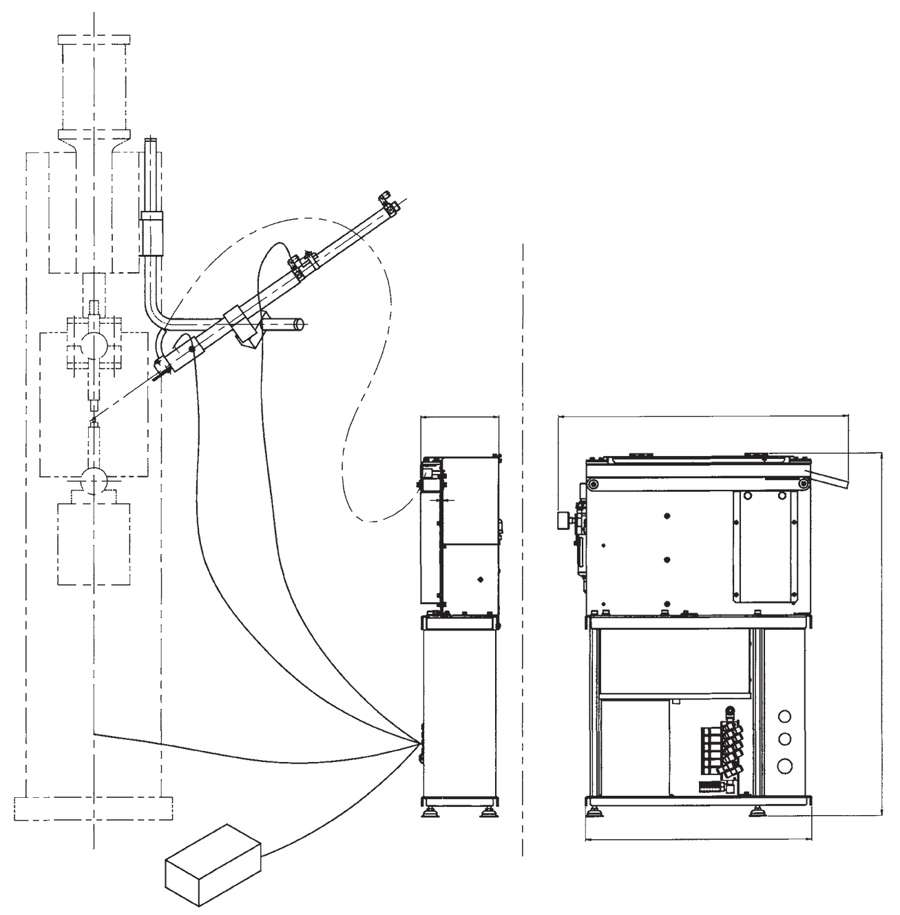 - Cylinder Stroke 300 mm: Push rod extends approximately 235 mm